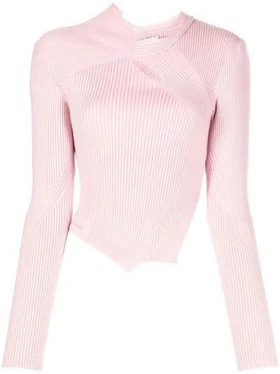 light pink wool blend knitted construction ribbed knit cut-out detailing asymmetric neck long sleeves asymmetric hem