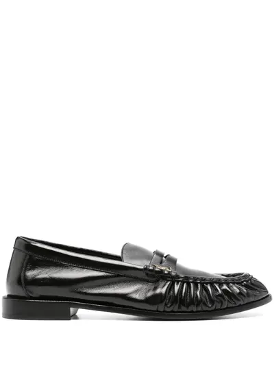 black lambskin almond toe moc stitching penny slot signature Cassandre logo plaque branded leather insole leather sole slip-on style This piece comes complete with a protective dust bag.