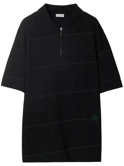 black/white cotton signature Equestrian Knight motif diagonal stripe pattern embroidered logo to the side polo collar short front zip fastening short sleeves straight hem