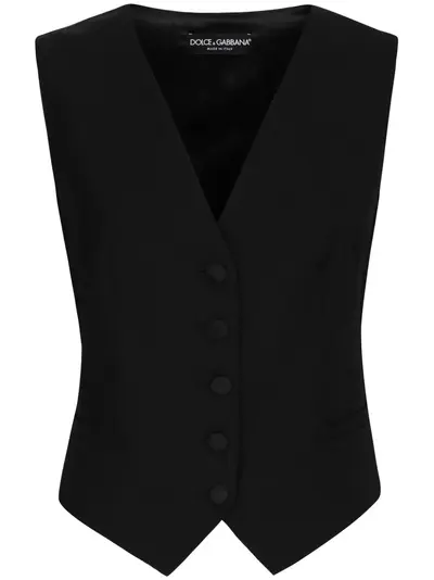 black virgin wool blend V-neck front button fastening sleeveless pointed hem