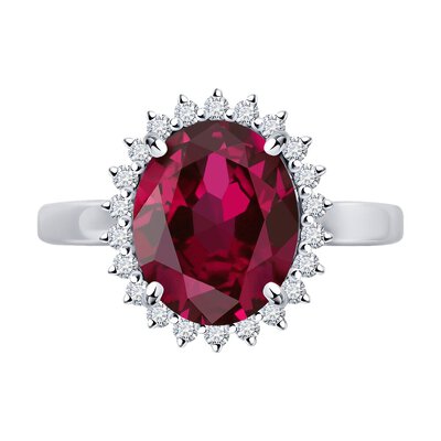 Кольцо из белого золота с бриллиантами и рубином, артикул 4010737-3, представляет собой изысканное сочетание классического стиля и современной роскоши. В центре изделия великолепно расположен овальный рубин глубокого насыщенного цвета, окруженный 22 бесцветными бриллиантами, создающими эффектное свечение. Общее количество вставок достигает 23, что делает это кольцо истинным произведением ювелирного искусства, идеальным для тех, кто ценит элегантность и изысканность.