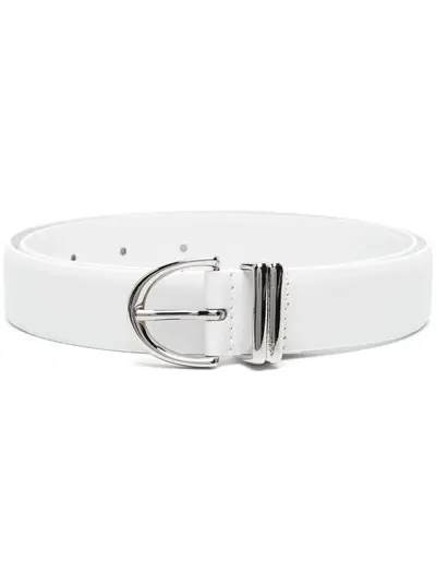 optical white calf leather silver-tone hardware buckle fastening adjustable fit punched holes