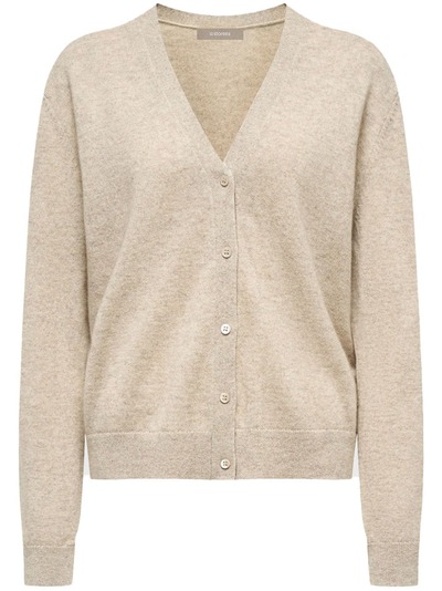 light beige wool-cashmere blend fine knit V-neck front button fastening long sleeves ribbed cuffs and hem straight hem