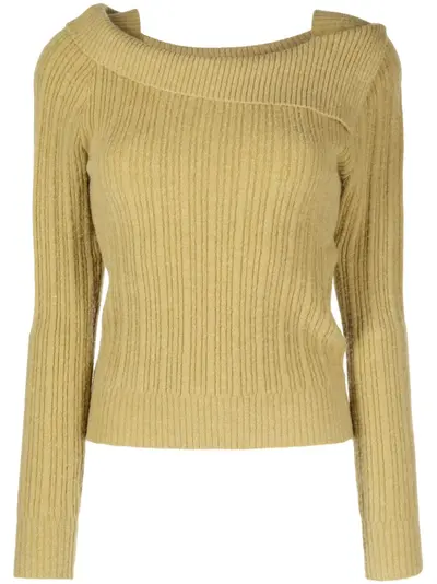 green knitted construction ribbed knit square neck long sleeves straight hem