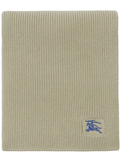khaki cashmere ribbed knit signature Equestrian Knight motif embroidered logo to the front finished edge rectangle shape wraparound style