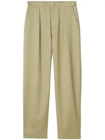archive beige cotton pleat detailing adjustable side straps front button and zip fastening straight leg two side inset pockets long length