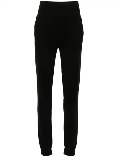 black cashmere elasticated waistband high waist two side inset pockets slim cut ribbed ankles