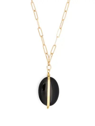 black/gold-tone brass gemstone pendant cable-link chain lobster claw fastening