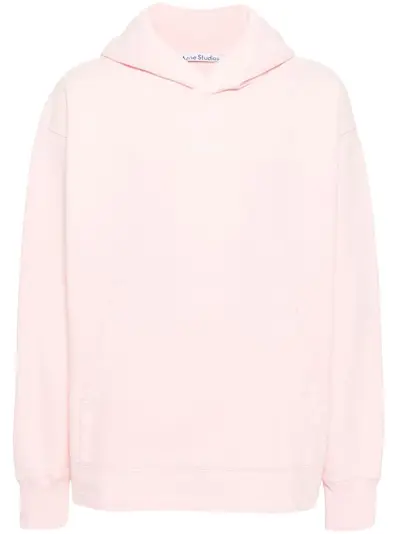 pink, white cotton jersey fleece classic hood drop shoulder long sleeves ribbed cuffs logo print at the chest front pouch pocket straight hem