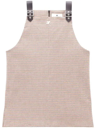 light brown/black/white cotton-wool blend check pattern buckle-embellished shoulder straps square neck logo patch at the chest straight hem