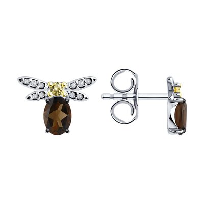 Серьги Sokolov из золочёного серебра с раухтопазами и фианитами 1281645921 (lpn25365682)