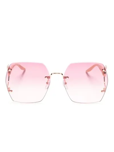 rose gold-tone/light beige metal/acetate geometric oversize frame rimless lenses pink tinted lenses UV-protective lenses nose pads cut-out detailing to the arms signature Double G logo to the arms sculpted arms with curved tips These glasses come with a protective case.