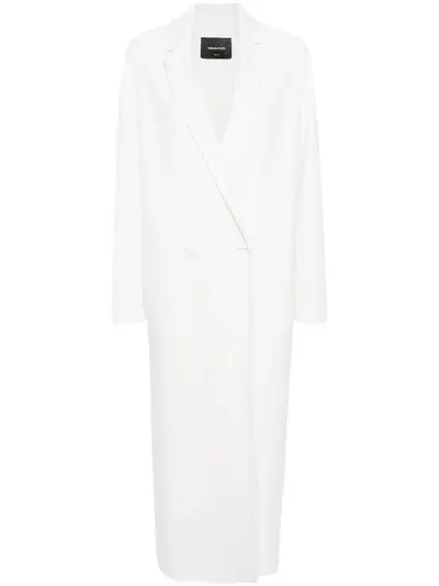 white cashmere felted finish narrow notch lapels double-breasted button fastening long sleeves two side inset pockets rear slit unlined straight hem maxi
