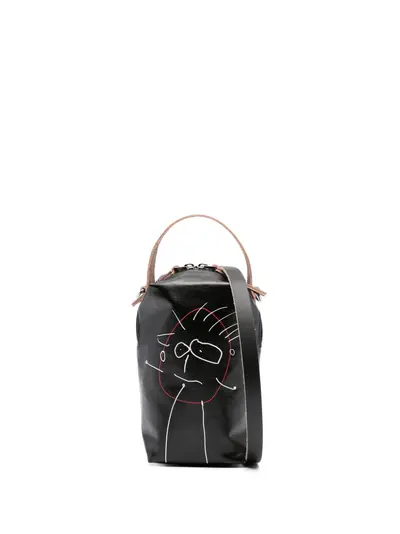 black/white calf leather smooth grain graphic print to the front logo print to the rear bucket body single flat top handle adjustable detachable shoulder strap two-way zip fastening main compartment