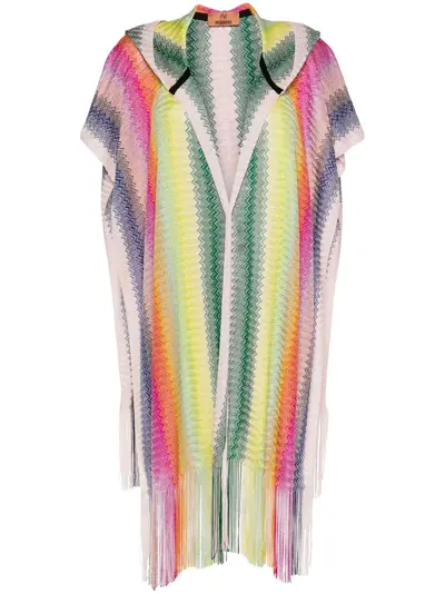 green/multicolour knitted construction signature zigzag woven design open front short draped sleeves fringed edge thigh-length The item you receive may differ slightly from the item photographed. This is due to the artisanal nature with which all Missoni products are constructed.