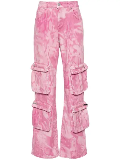 rose pink cotton blend stretch-design washed denim tonal stitching exclusive camouflage chine print belt loops classic five pockets logo studs multiple cargo pockets logo patch to the rear straight wide leg logo-debossed buttons concealed fly and button fastening