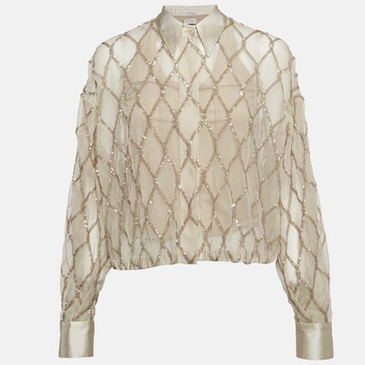 Brunello Cucinelli Beige Argyle Sequined Silk Shirt M 943721 - 1 small
