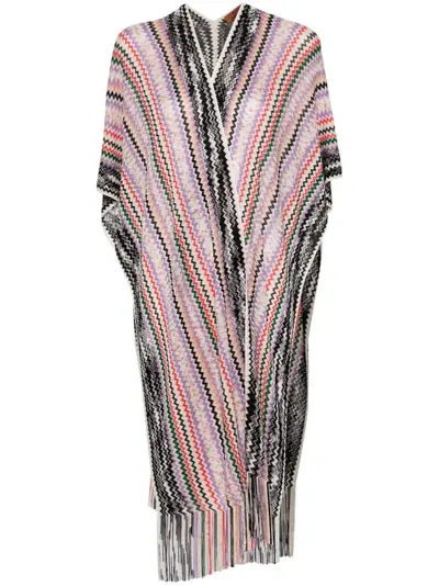 red/multicolour open knit signature zigzag woven design cape design V-neck fringe detailing open front The item you receive may differ slightly from the item photographed. This is due to the artisanal nature with which all Missoni products are constructed.