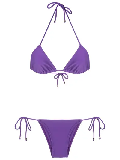 electric purple stretch-design triangle cup rear tie fastening side-tie bottoms Be mindful to try on swimwear over your own garments.