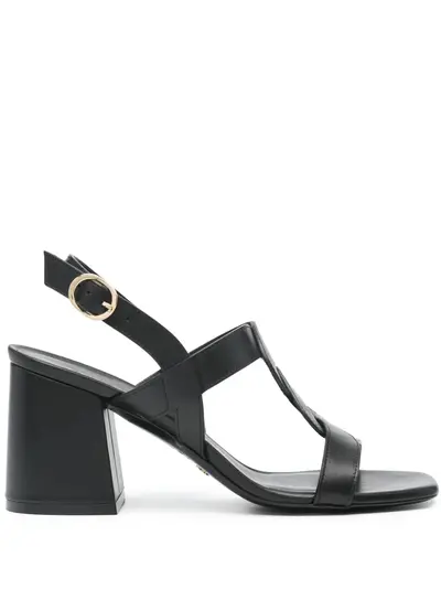 black calf leather twist detailing buckle-fastening slingback strap square open toe branded leather insole leather sole 75mm block heel