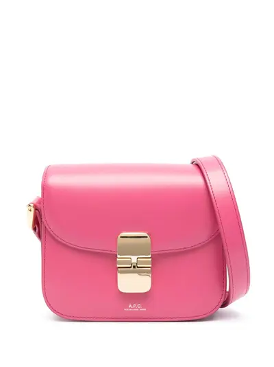 fuchsia pink calf leather adjustable shoulder strap logo print to the front partitioned compartment multiple internal slip pockets internal logo patch suede lining gold-tone hardware foldover top clasp fastening This piece comes complete with a protective dust bag.