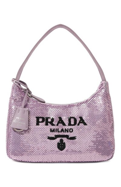 Сумка Re-Edition 2000 стала переизданием культовой модели бренда, выпущенной в 2000-х. Миучча Прада и Раф Симонс сохранили первоначальный силуэт аксессуара, но выбрали для пошива новые материалы. Вариацию, украшенную сияющими лиловыми пайетками, выполнили из экологичного фирменного нейлона, произведенного из переработанного океанического мусора.