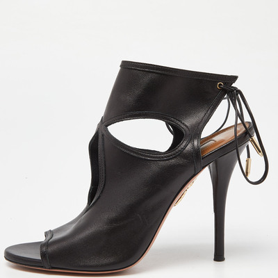 Aquazzura Black Leather Sexy Thing Sandals Size 37.5 946046 (чёрный, lpn25561963)