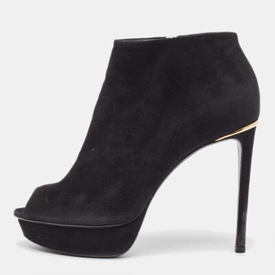 Louis Vuitton Black Suede Peep Toe Ankle Boots Size 37 949044 (чёрный, lpn25614740)
