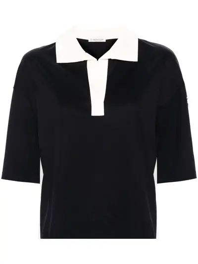 black/white cotton lightweight jersey colour-block design contrasting trim logo patch at the sleeve polo collar split neck drop shoulder short sleeves cropped straight hem authenticity QR code