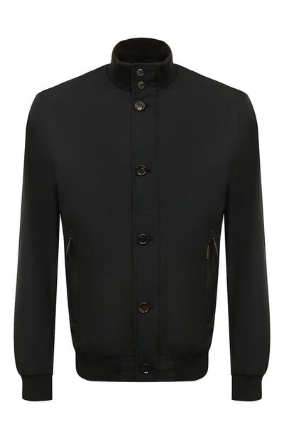 Бомбер Sironi-GF с отделкой из замши и эластичного рифленого трикотажа сшили из габардина на основе полиэстера. Куртку с воротником-стойкой и штормовой планкой на пуговицах дополнили двумя парами карманов на молниях: боковыми и внутренними.