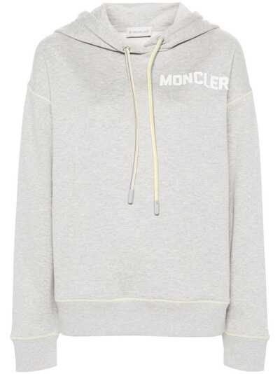 ash grey cotton jersey texture seam detailing embroidered logo at the chest contrast stitching drawstring hood drop shoulder long sleeves ribbed cuffs and hem straight hem