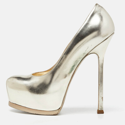 Yves Saint Laurent Light Gold Leather Tribtoo Platform Pumps Size 37.5 952123 (lpn25706951)