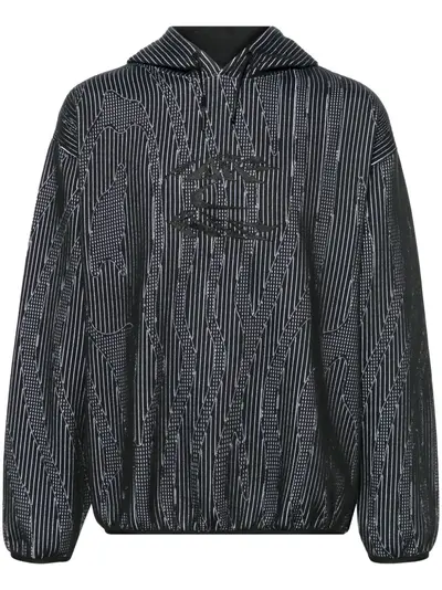 black knitted construction full jacquard embroidered logo to the front drawstring hood drop shoulder long sleeves elasticated cuffs and hem