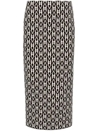 black/light beige/ivory white knitted construction all-over geometric-pattern print pencil silhouette unlined straight hem concealed side zip fastening