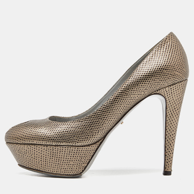 Sergio Rossi Grey Lizard Embossed Leather Peep Toe Platform Pumps Size 38.5 954564 (lpn25782301)