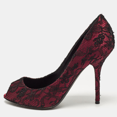 Dolce&Gabbana Burgundy/Black Lace and Mesh Peep Toe Pumps Size 38 953456 (lpn25782476)