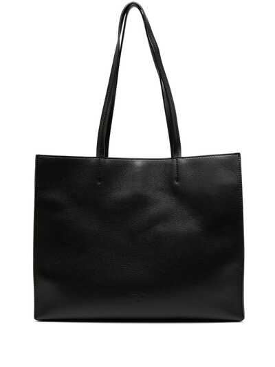 black calf leather grained texture stitched edge debossed logo to the front open top clasp fastening thin shoulder straps main compartment internal zip-fastening pocket internal patch pockets full lining