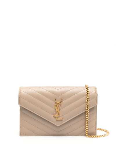 archive beige calf leather grained texture matelassé effect chevron quilting signature Cassandre logo plaque gold-tone hardware foldover top with magnetic fastening detachable chain-link shoulder strap main compartment internal logo stamp multiple internal slip pockets