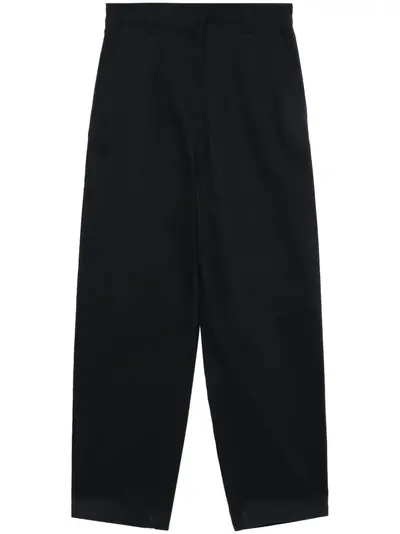 navy blue cotton twill weave leather logo patch to the rear waistband logo flag to the rear rear high-rise belt loops zip fly fastening slip pockets to the sides two rear patch pockets subtle tapered leg cropped