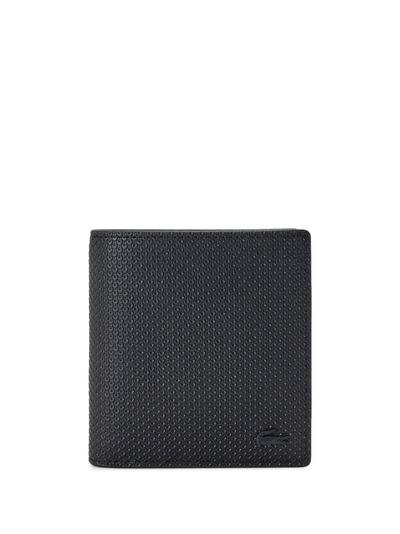 black leather appliqué logo bi-fold design internal card slots debossed internal logo note compartment RFID technology