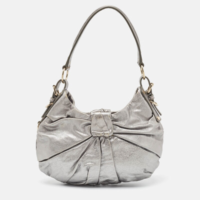 Yves Saint Laurent Metallic Leather Pleated Bow Hobo 995427 (lpn25834089)