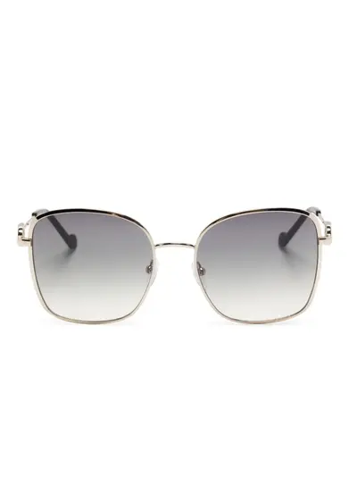 gold-tone metal square frame gradient lenses UV-protective lenses nose pads logo plaque sculpted arms curved tips These glasses come with a protective case.