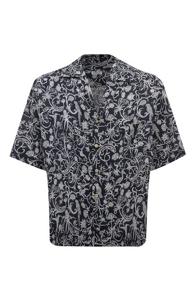 Мастера итальянской марки сделали рубашку в гавайском стиле элегантнее, выполнив ее из ткани с монохромным брендированным принтом. Тонкий умягченный лен хорошо проводит воздух и обеспечивает комфорт даже в жару. А выверенный крой и множество технологических операций, выполняемых вручную, гарантируют идеальную посадку.