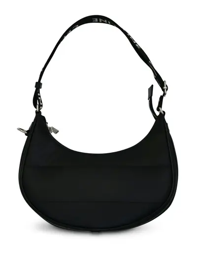 black logo-embellished shoulder strap top zip fastening main compartment silver-tone hardware Condition: EXCELLENT. This previously owned item is in near-perfect condition with no signs of damage or use.