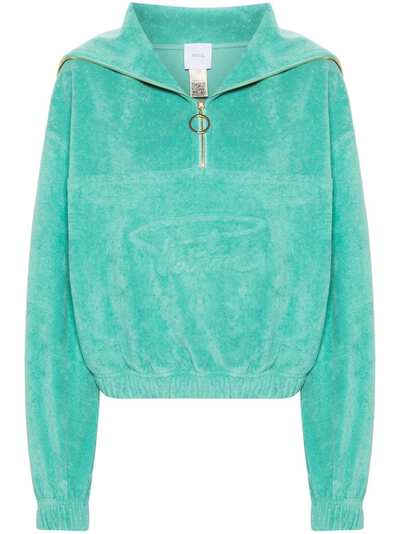 mint green cotton terry-cloth effect high drawstring neck long sleeves with elasticated cuffs embossed logo to the front two side inset pockets elasticated hem gold-tone hardware ring hardware detailing short front zip fastening