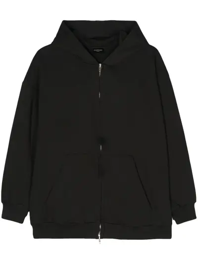 black cotton jersey texture classic hood two front pouch pockets crystal embellished appliqué logo drop shoulder long sleeves ribbed cuffs and hem front two-way zip fastening When buying this unisex item, keep in mind that it is graded in standard men's sizing.