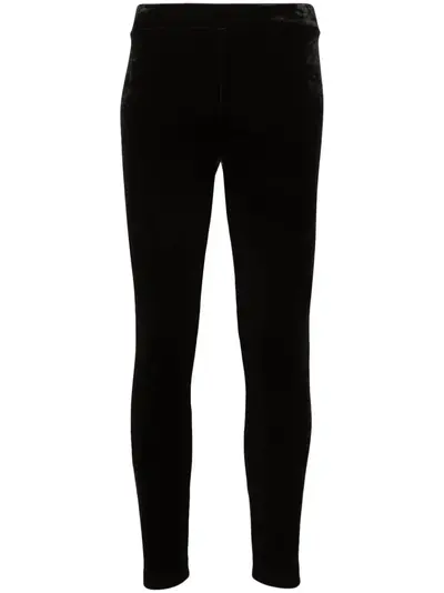 black stretch-design velvet effect elasticated waistband super-skinny cut jersey lining pull-on style
