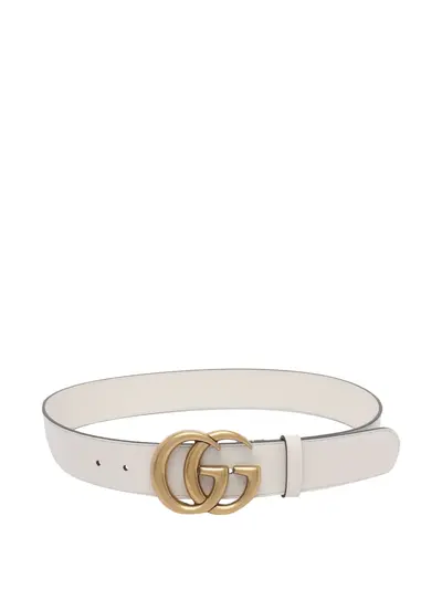 white/gold-tone leather/brass smooth grain signature Double G buckle wide style punched holes adjustable fit