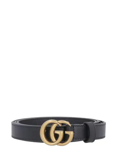 black leather signature Double G buckle gold-tone hardware buckle fastening adjustable fit punched holes This piece comes complete with a protective dust bag.