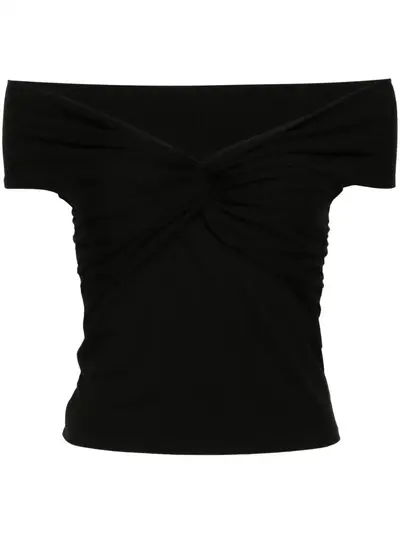 black TENCEL™ Lyocell blend lightweight jersey ruched detailing off-shoulder V-neck straight hem